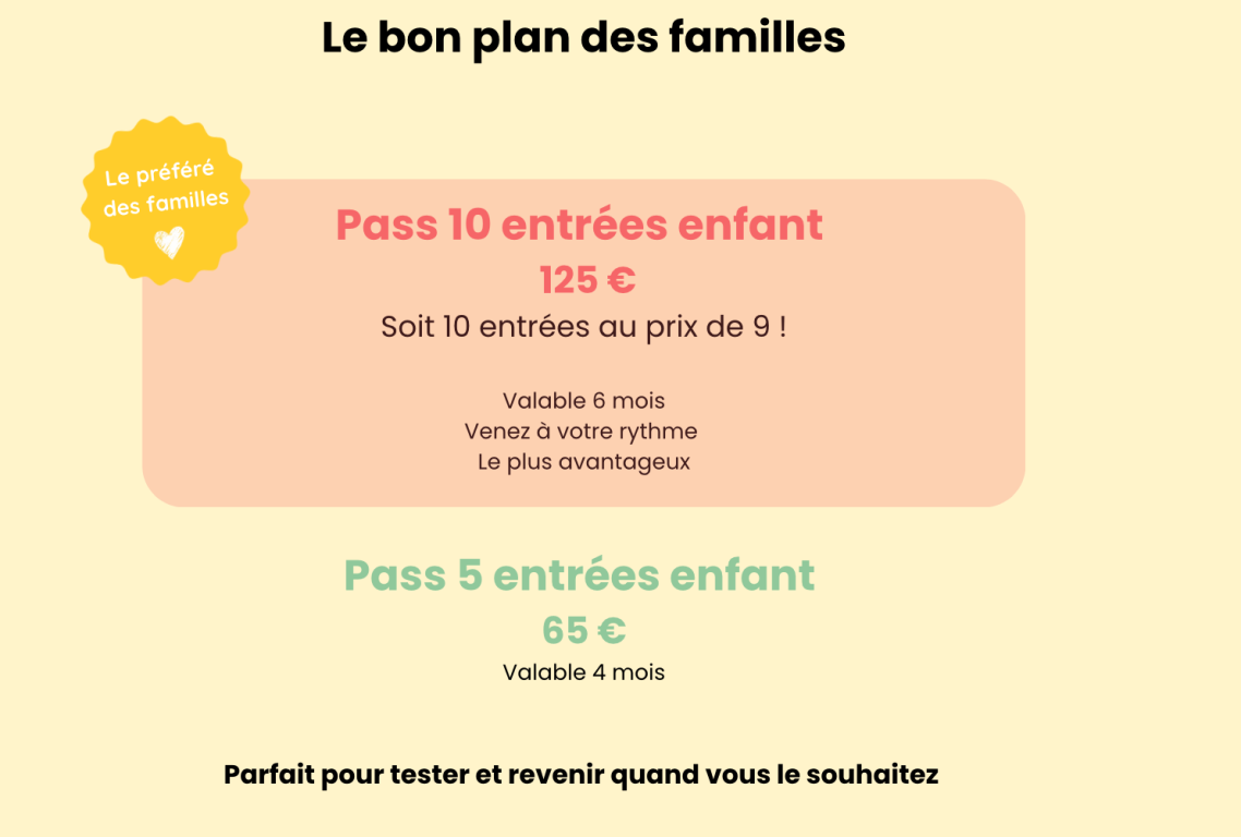Places limitées par créneau afin de garantir le confort des familles.